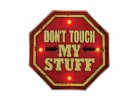 Retro kovová cedule s designem Don't Touch My Stuff a ozdobnými LED světly, je perfektním doplňkem k dokonalému zařízení bytu, podkroví nebo...