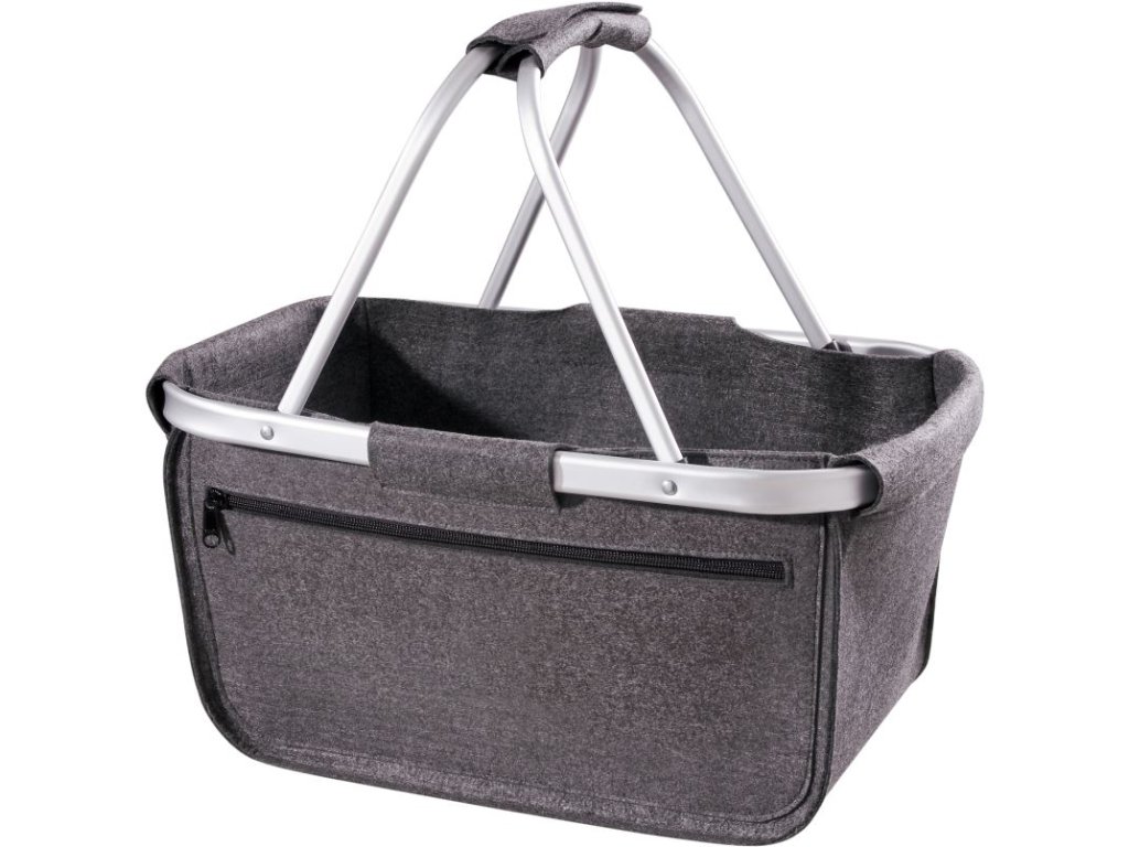 Plstěný nákupní košík s hliníkovým rámem a přední kapsou na zip.